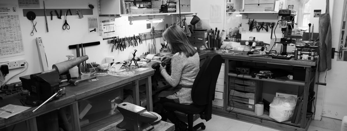 Hazel designs and handcrafts her jewellery in her studio in Inverness in the Highlands of Scotland, using traditional gold and silversmithing techniques and sells all her work in the adjacent Gallery. She is the owner of the brand HP Jewellery.